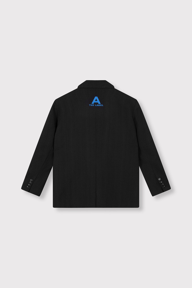 De Structured Blazer is een oversized blazer gemaakt van een gestructureerde pakkenstof (suit fabric) in het zwart. De blazer heeft een opvallend 'THE LABEL' artwork op de mouw. Op de rug is het logo "A THE LABEL" geborduurd in mooie blauwe letters. Combineer deze blazer met de washed denim jeans voor een complete look of draag hem chique op een zwarte pantalon!