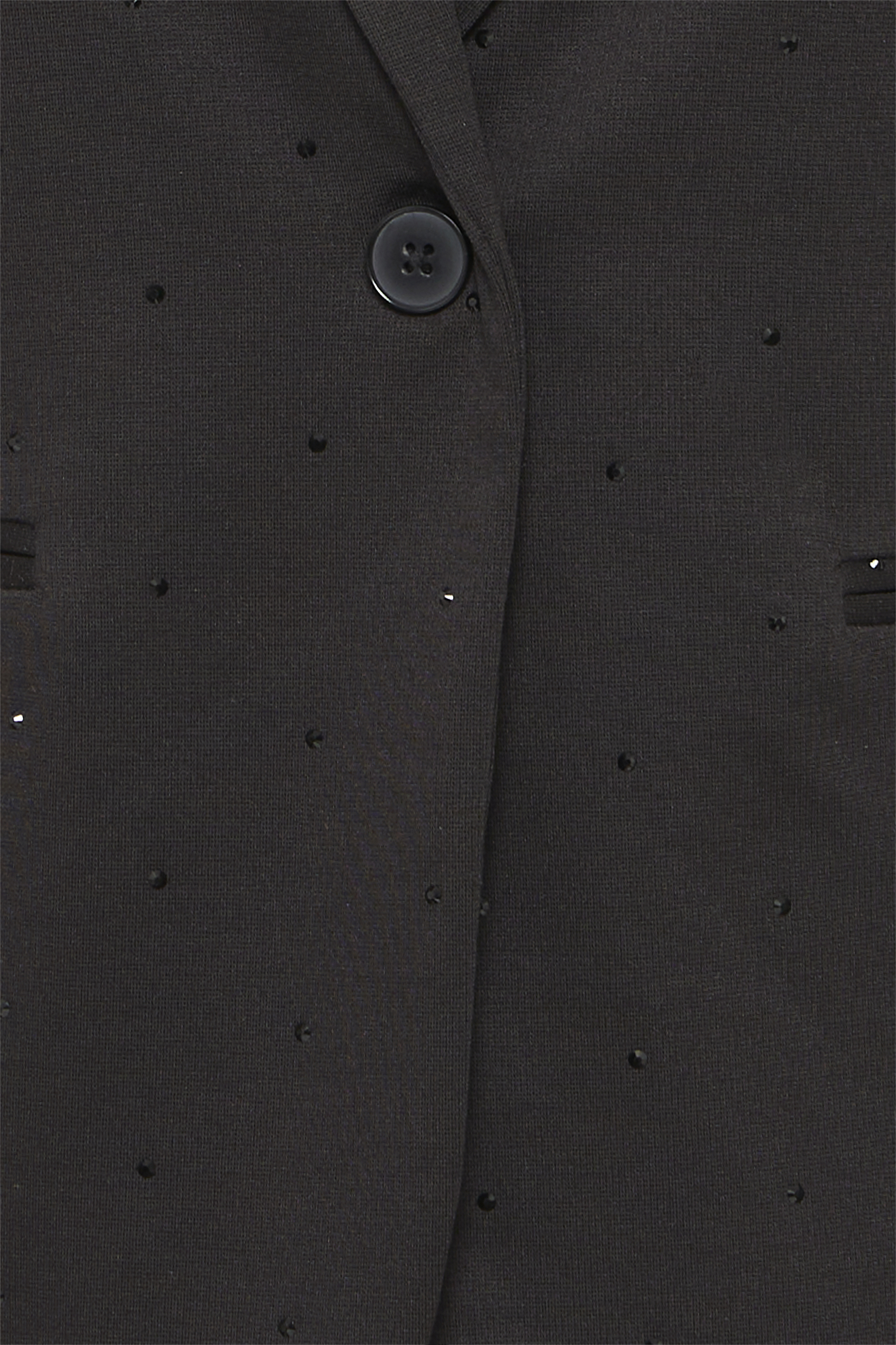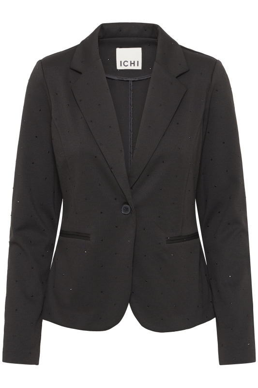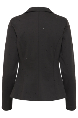 De Kate Blazer Rhinestones van Ichi is een blazer met een Regular Fit en lange mouwen, uitgevoerd in een comfortabele gebreide (knitted) kwaliteit met stretch. De blazer is subtiel en elegant versierd met kleine zwarte rhinestones. Combineer hem chique als pak met de bijpassende pantalon of draag hem meer casual op een jeans!