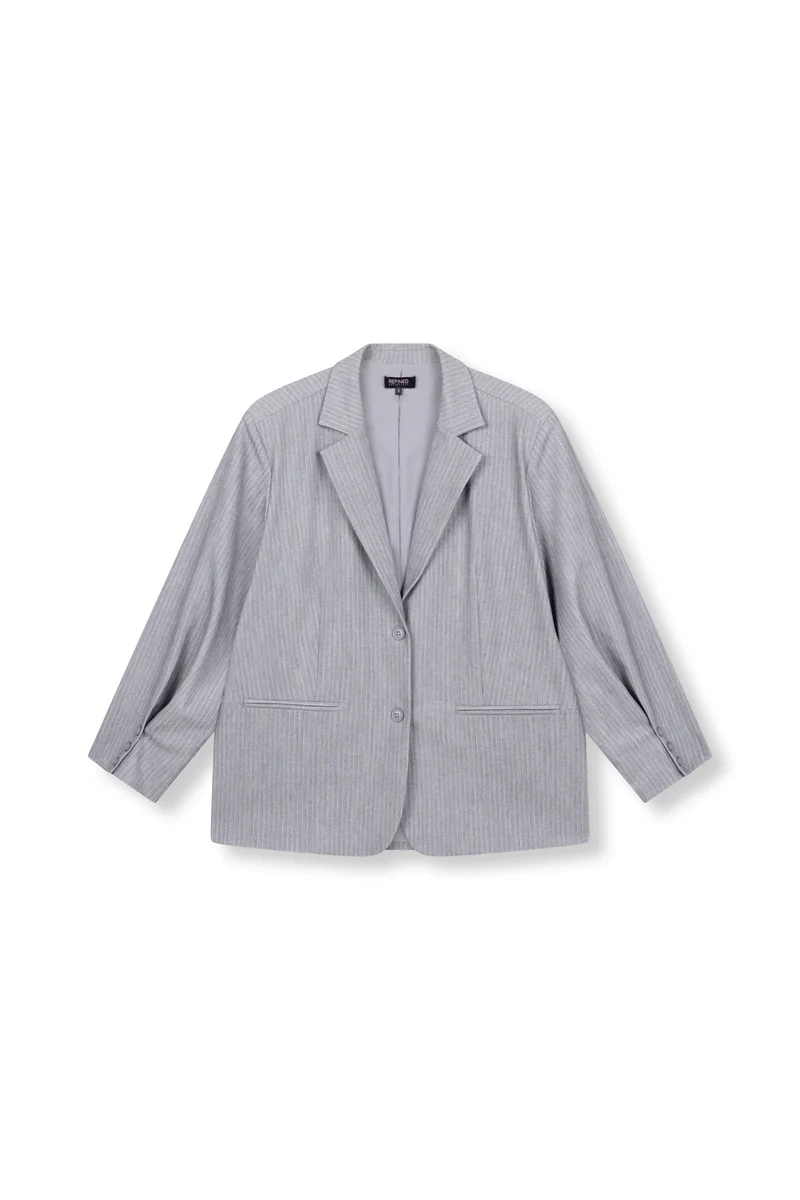 De Blazer Micky van Refined Department is een stijlvolle oversized blazer, gemaakt van een rijke suiting-stof met subtiele lurex-glans voor een elegante touch. De gedetailleerde mouwen, dubbele knoopsluiting, steekzakken, schoudervullingen en klassieke reverskraag geven deze blazer een verfijnde en modieuze uitstraling. Combineer haar met broek Kalea voor een complete, chique look.