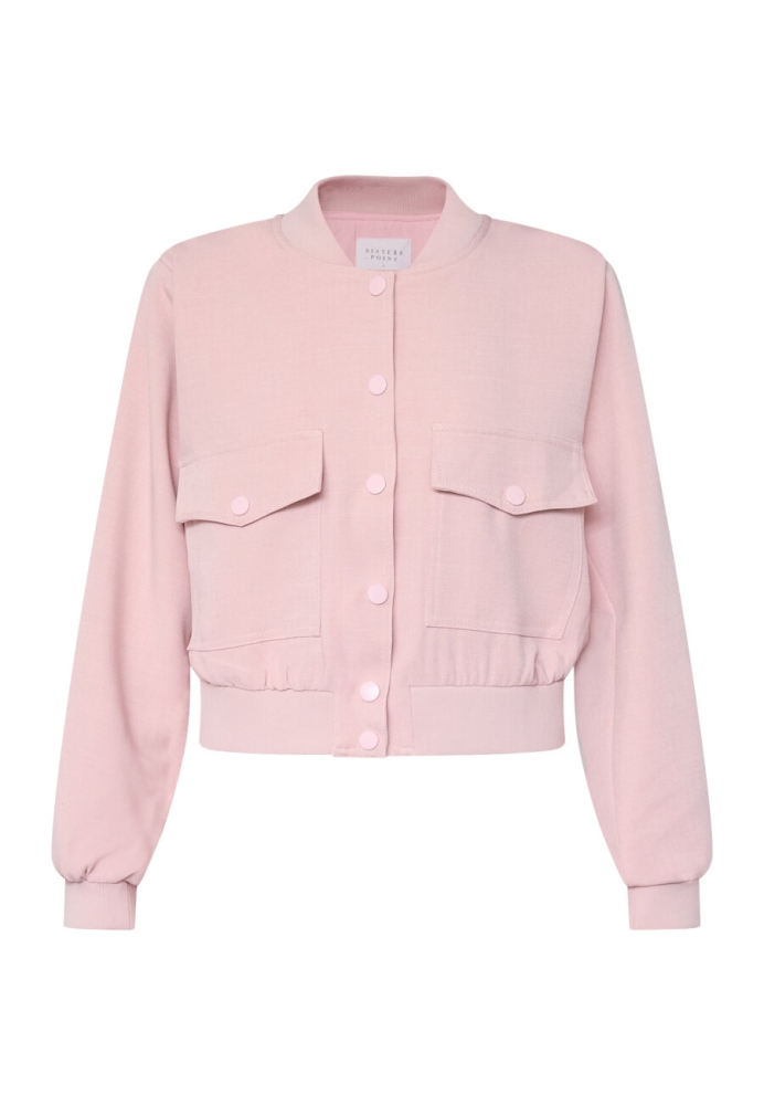 Garwin is een kort jack in een effen kleur met een knoopsluiting aan de voorkant. Het jasje heeft twee zakken aan de zijkant en is afgewerkt met een brede geribde elastische boord bij de polsen, taille en hals, wat zorgt voor een sportieve en comfortabele uitstraling.