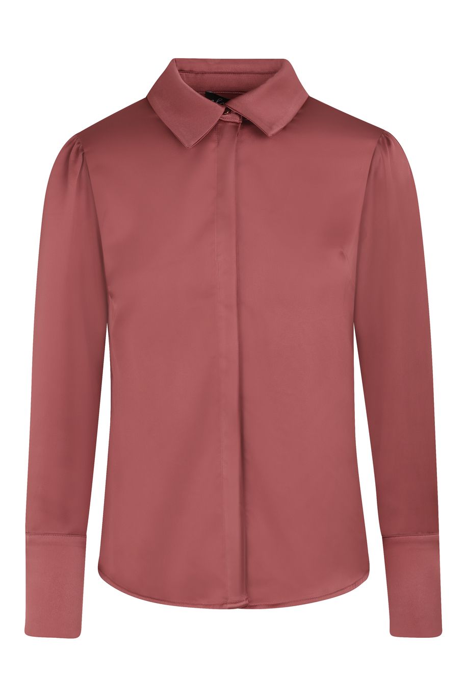 De Blouse van Elvira is een elegante blouse gemaakt van een gladde, glanzende stof die zorgt voor een luxe uitstraling. Het klassieke model heeft een kraag, lange mouwen met manchetten en een blinde knoopsluiting voor een naadloze afwerking. Perfect te combineren met een mooie knit op een pantalon voor een chique, stijlvolle look.