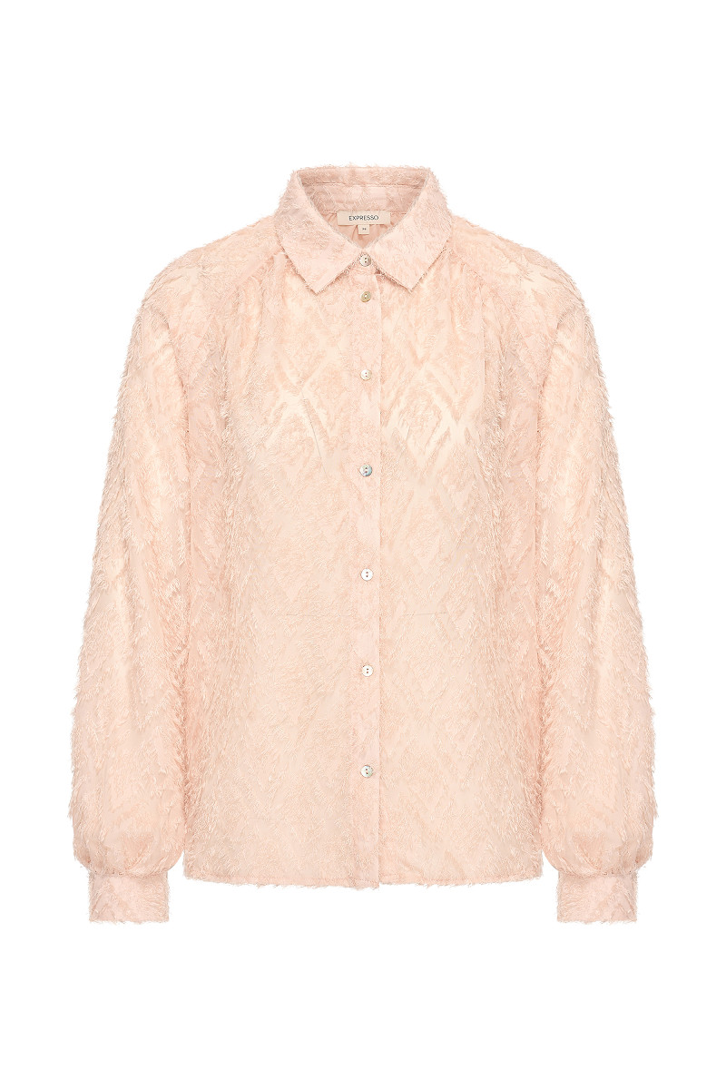 Deze zalmkleurige blouse van Expresso heeft een straight fit en een klassieke kraag. De blouse is uitgevoerd in 100% polyester met rechte lange mouwen, franjes en een knoopsluiting. Een veelzijdig en stijlvol item dat je gemakkelijk dagelijks kunt dragen.