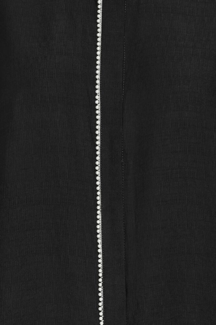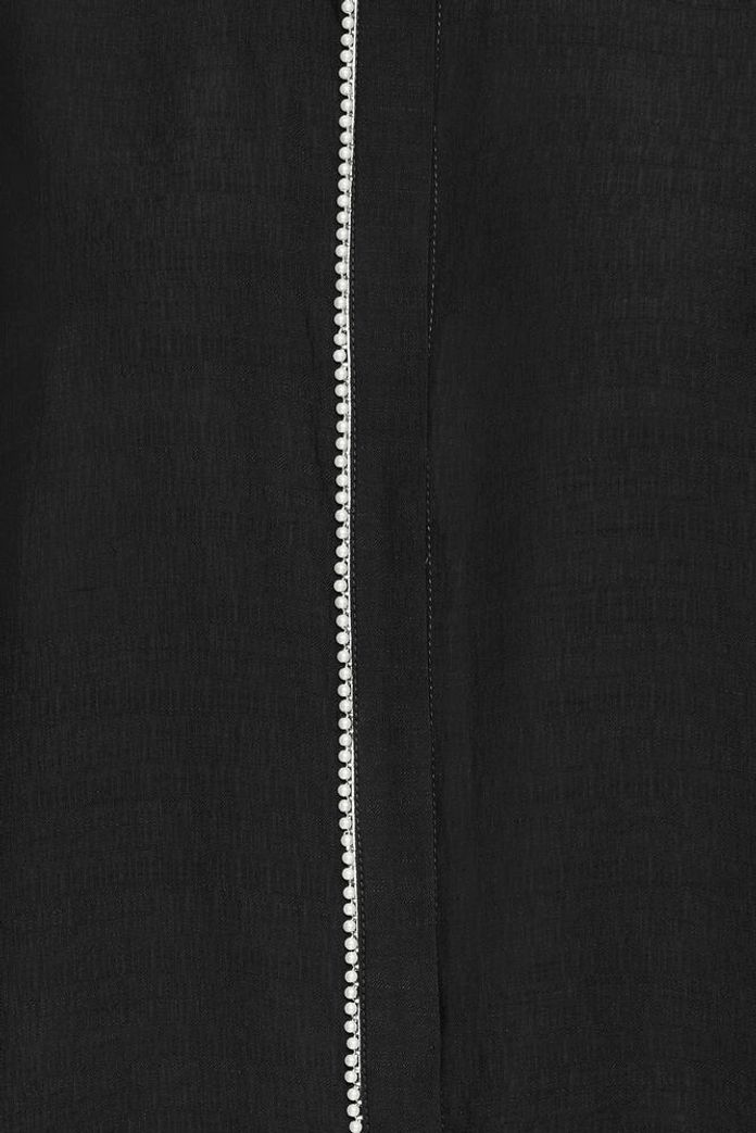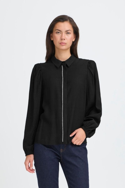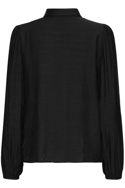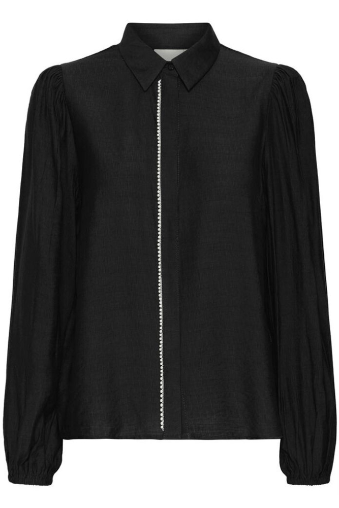 De Blouse Rhines is een klassieke zwarte blouse met een regular fit en lange mouwen. De blouse is uitgevoerd in een geweven kwaliteit. De sluiting aan de voorzijde is subtiel afgewerkt met decoratieve pareltjes. De mouwen hebben een klein pofmouwtje voor een vrouwelijke touch.