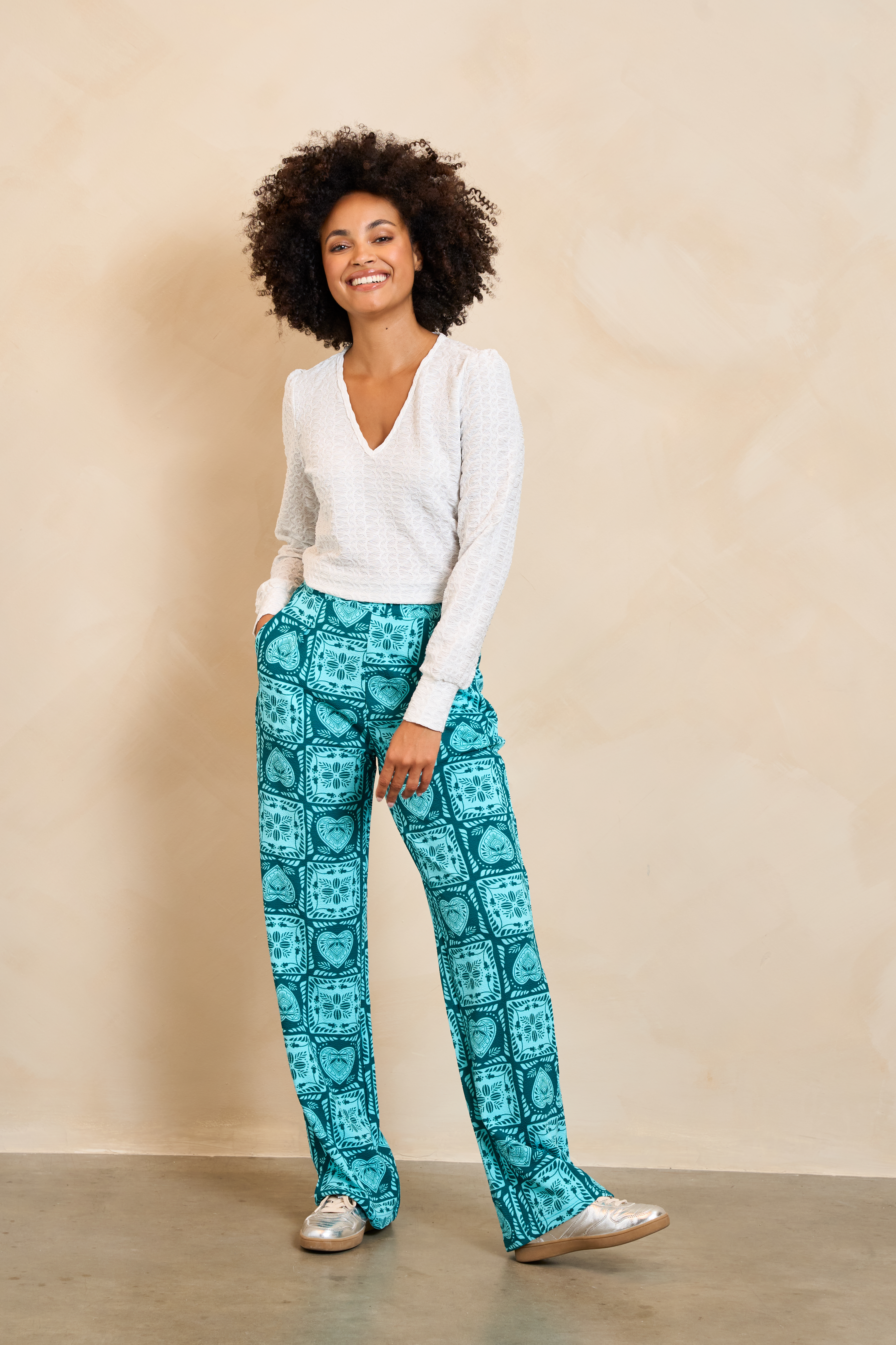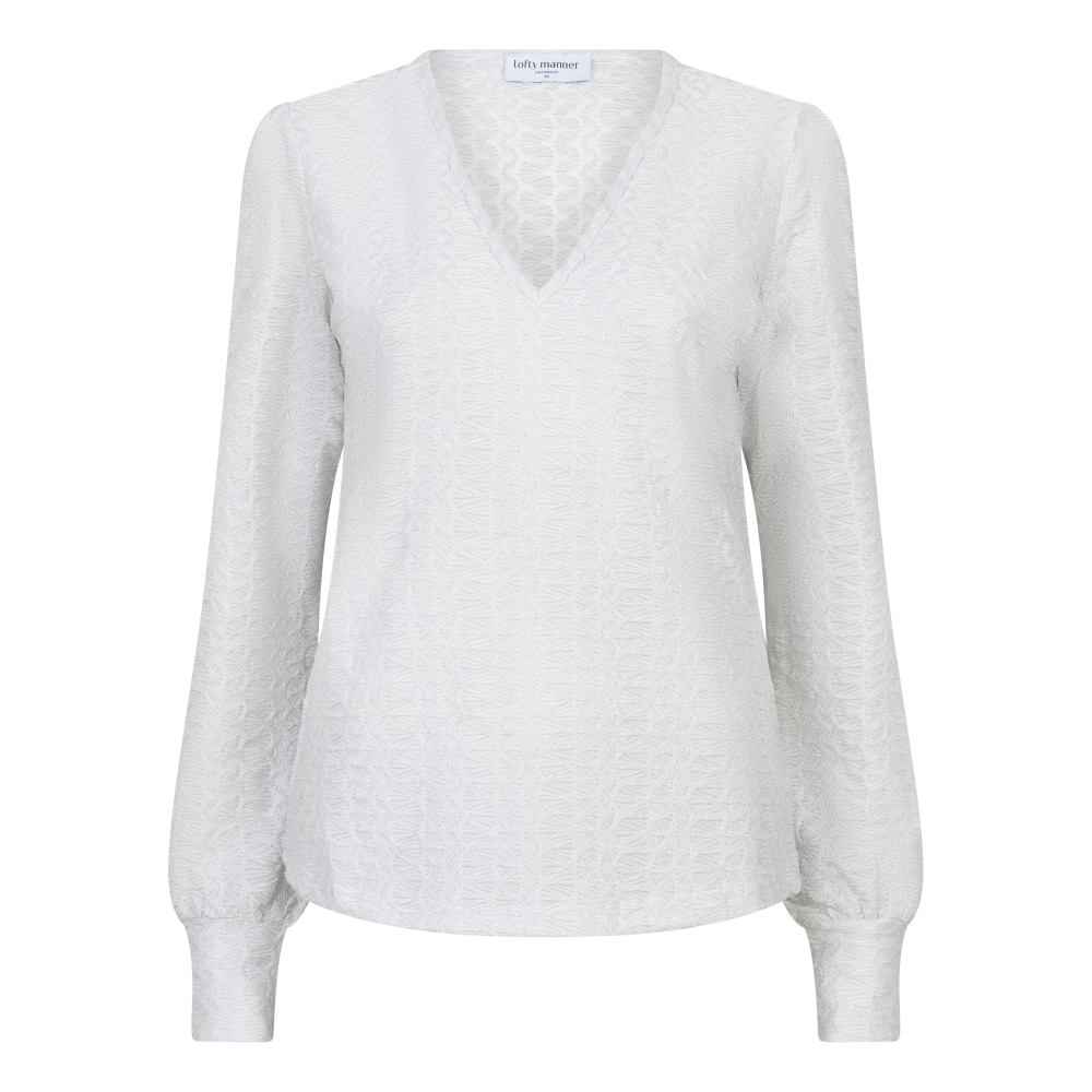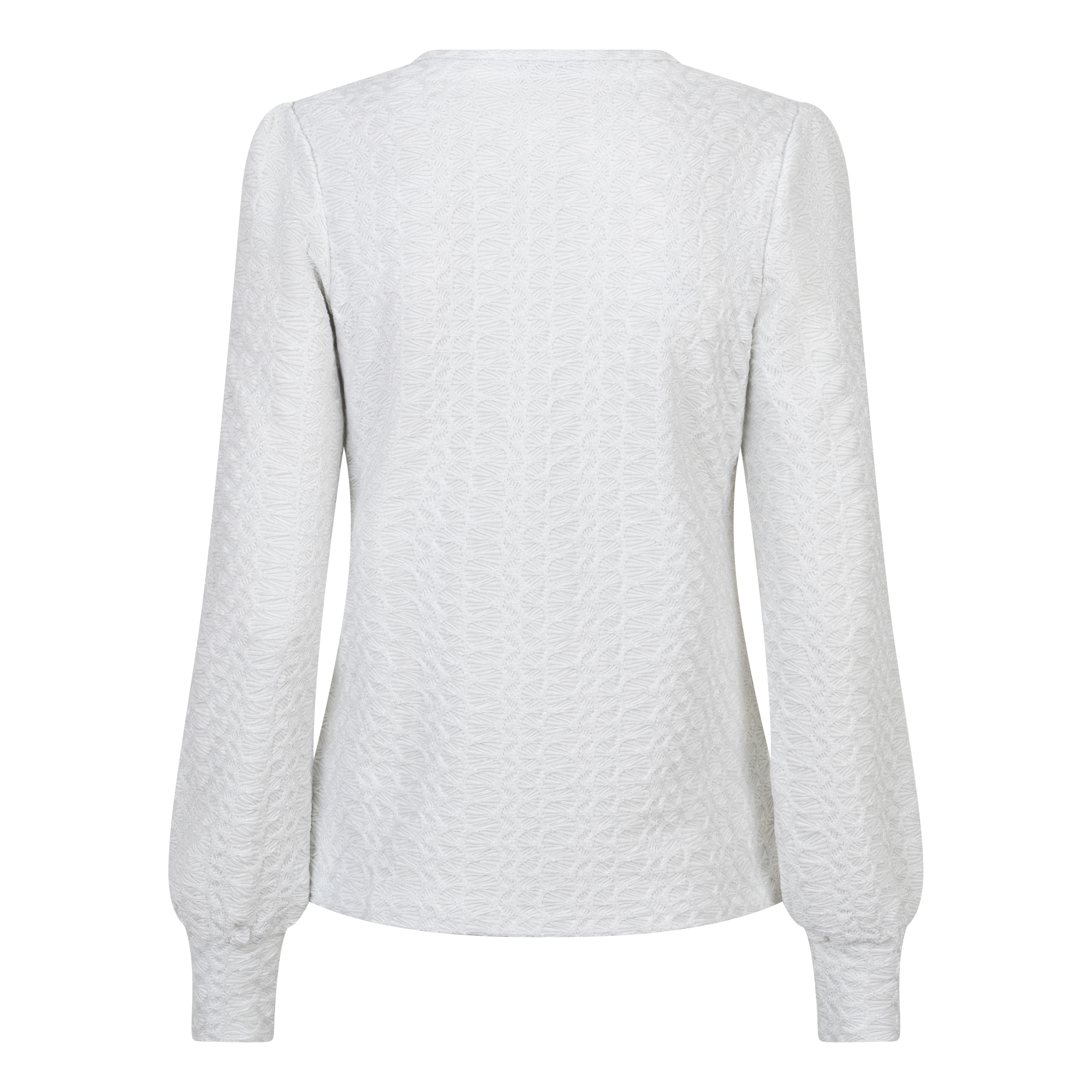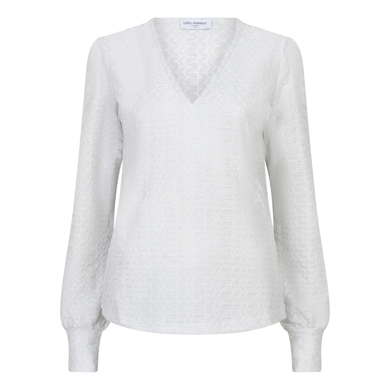 Blouse Harlow is een witte blouse met V-hals en pofmouwen. De stof heeft een lichte glans. De blouse valt los om het lichaam. Een stijlvolle blouse die geschikt is voor zowel werk als een avond uit.