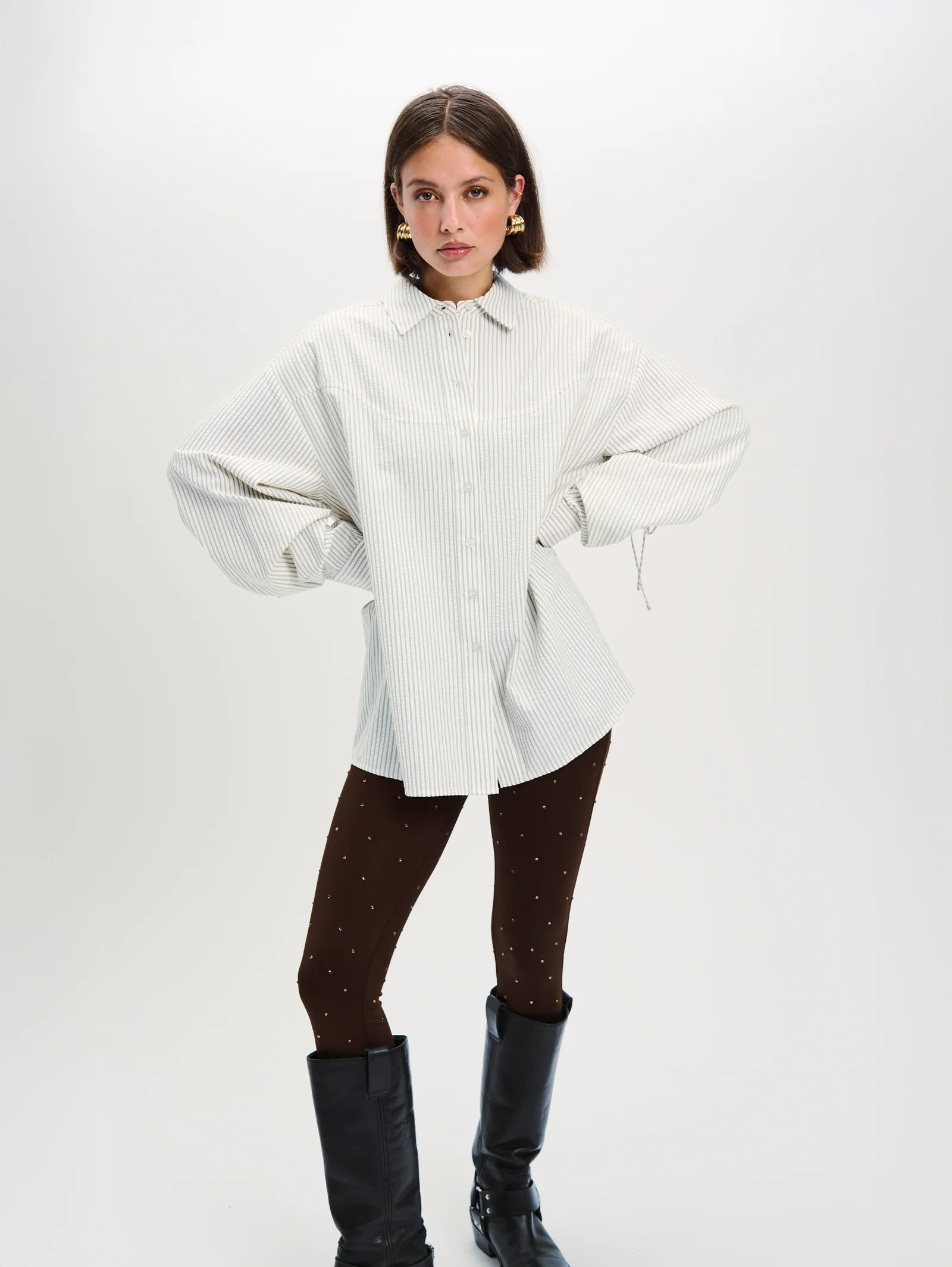 Zoek je een oversized gestreepte blouse met unieke details? De Gabby Oversized Blouse van Refined Department is gemaakt van een zachte katoenmix en combineert comfort met high-end design. De wijde manchetten en de verstelbare gathering (rimpeling) bij de mouw geven deze blouse een luxe, moderne uitstraling. Ideaal voor een casual of geklede look dankzij de klassieke kraag en knoopsluiting over de volledige lengte.