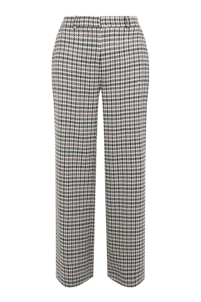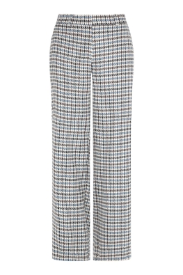 De Trouser Maud van Elvira is een stijlvolle broek met een opvallend geblokt (pied-de-poule) dessin. De broek combineert de kleuren wit, zwart en groen, wat zorgt voor een trendy, klassieke look.