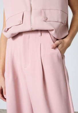 Great is een losvallende broek met wijde pijpen en een strakke, clean look. De pantalon heeft plooien aan de voorkant en praktische steekzakken, wat zorgt voor een elegante maar ontspannen uitstraling. Perfect te combineren met een blouse of blazer voor een stijlvolle outfit.