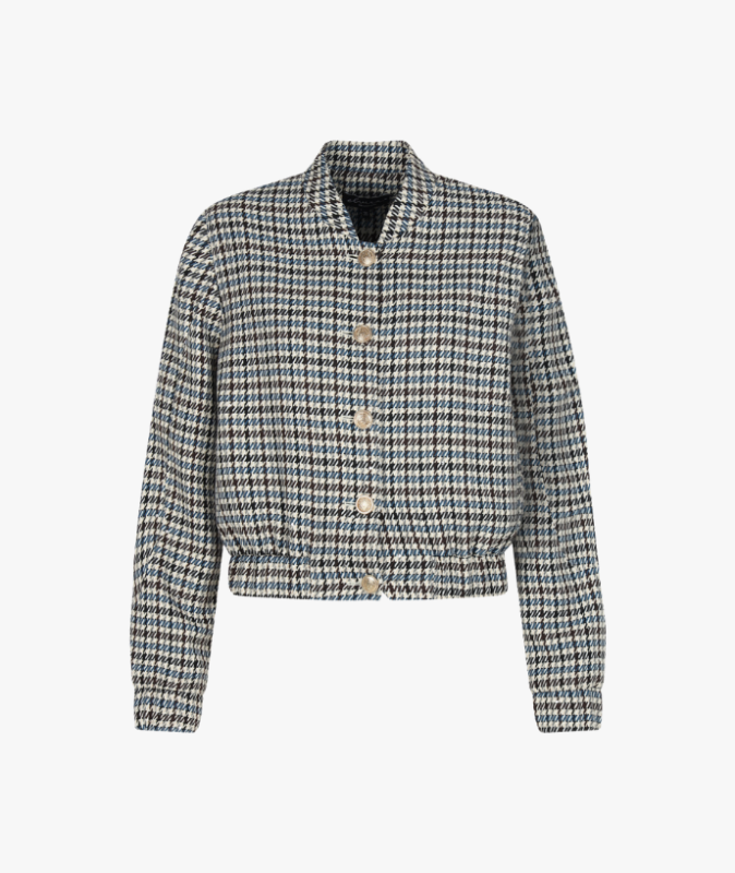 De Bomber Maud Checked Blue van Elvira is een stijlvol bomberjack dat moderne trends combineert met een tijdloos silhouet. Het jack is uitgevoerd in een opvallende ruitprint (passend bij de Broek Maud Pied-de-poule) in blauwtinten. De zachte, comfortabele stof en de ruitprint zorgen voor een veelzijdige en opvallende uitstraling.