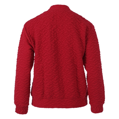 Structuur jasje met een opvallende combinatie van rood en zand. Het jasje heeft een moderne, stijlvolle uitstraling en is gemaakt van een soepele kwaliteit met lichte stretch, wat zorgt voor comfort en een mooie pasvorm.
