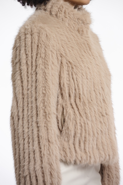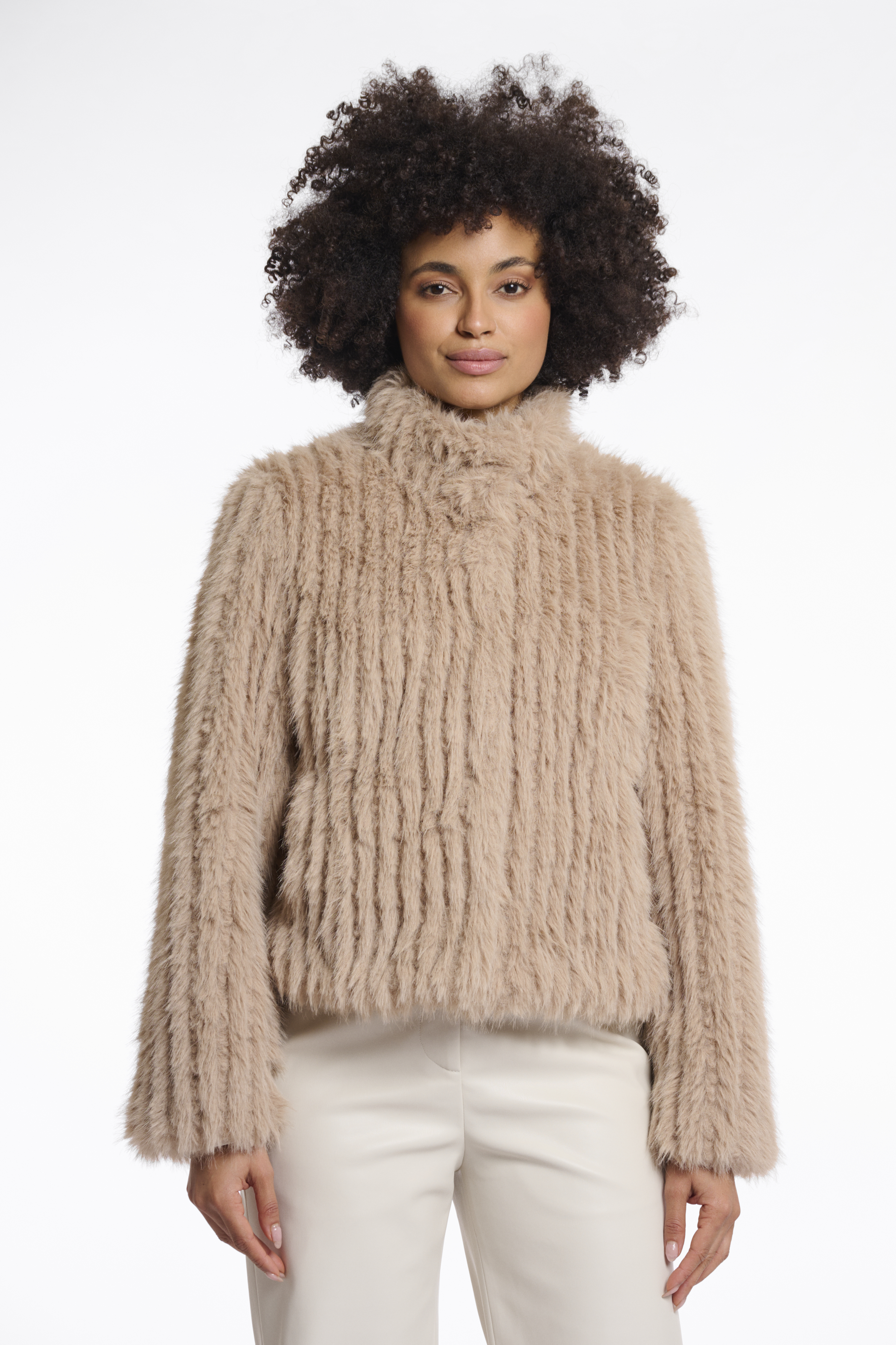 De Faith Jacket van Rino & Pelle is een korte jas van zacht imitatiebont. Het model heeft een drukknoopsluiting, een staande kraag en steekzakken in de zijnaad. De gedurfde gestreepte print geeft de jas een opvallende en modieuze uitstraling.