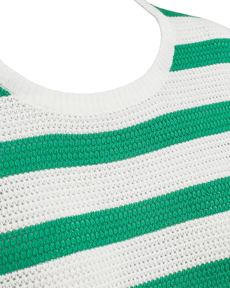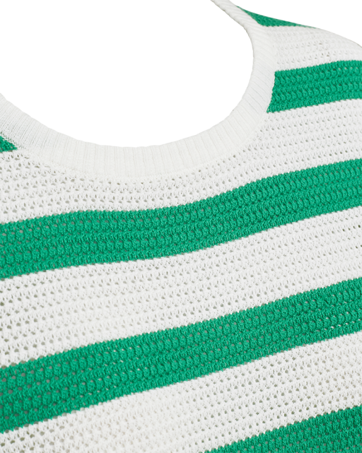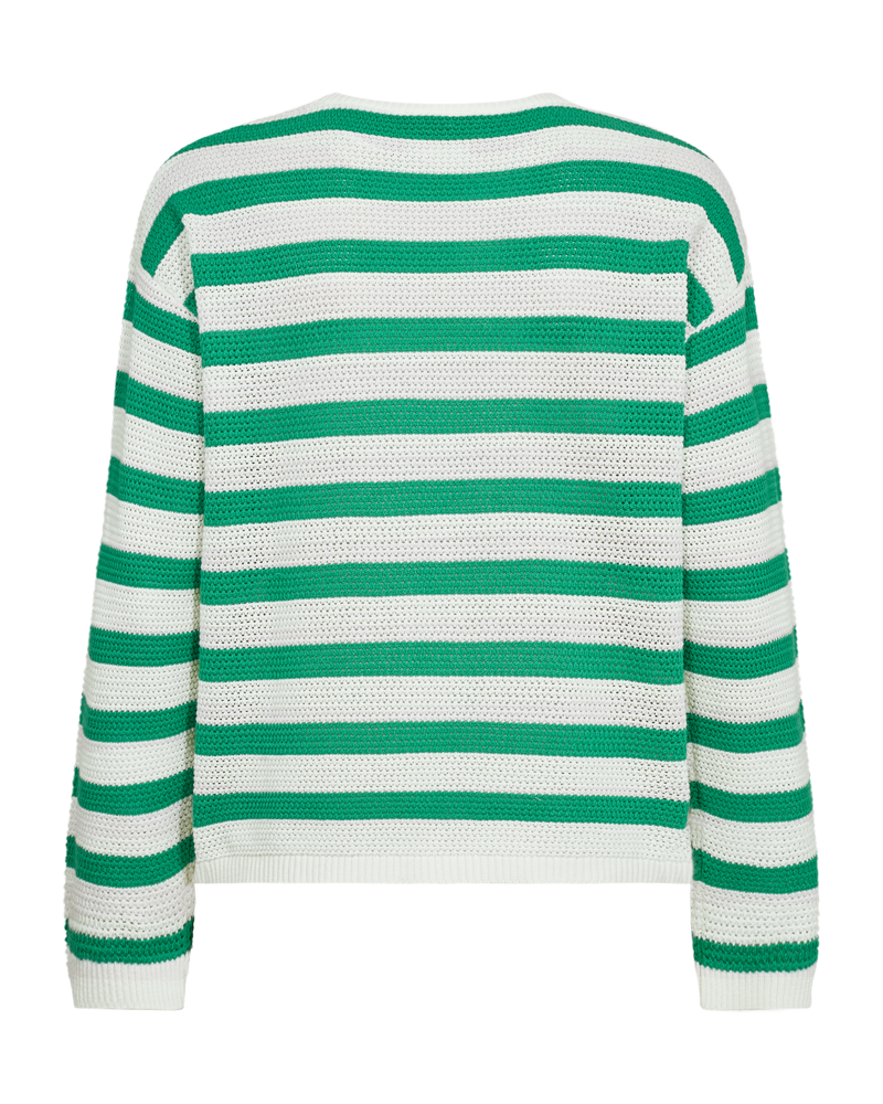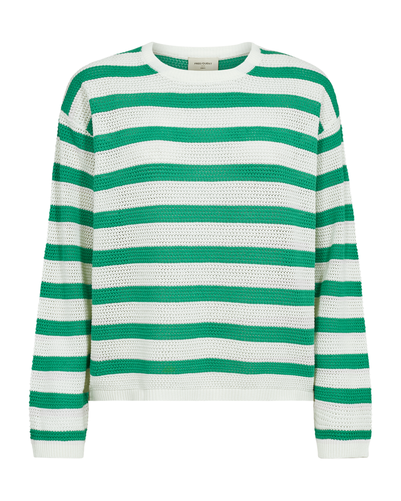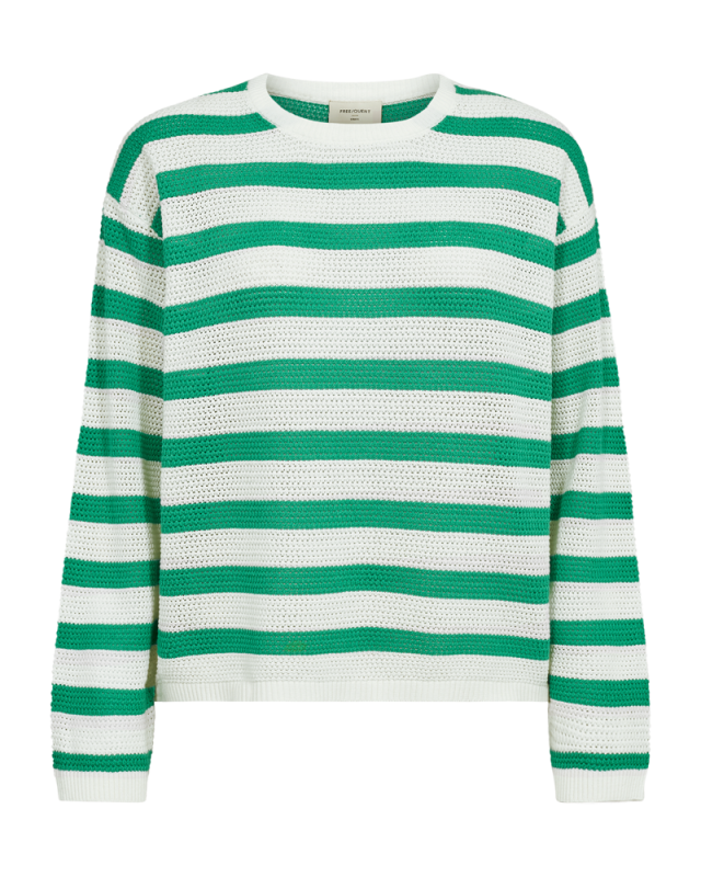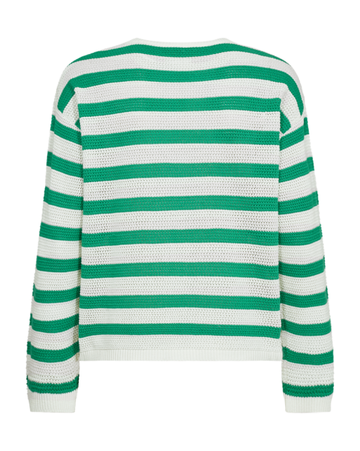 Dodo trui van Freequent met een tijdloos gestreept design in groen en beige. De trui is gemaakt van 100% biologisch katoen en voelt daardoor zacht en comfortabel aan. Een veelzijdig item dat perfect past bij zowel casual als geklede looks.