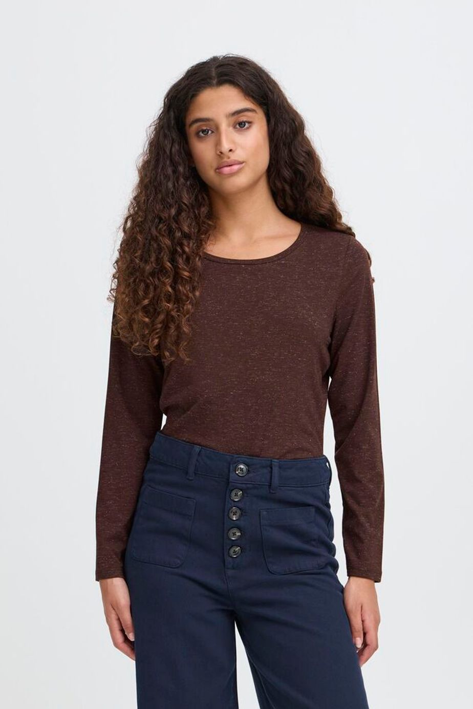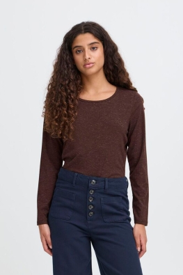 De Ichi Rebel is een gebreide longsleeve in een bruine en blauwe kleur. Dit veelzijdige model heeft een regular fit en een regular waist, en is gemaakt van een zachte en comfortabele mix van materialen voor dagelijks gebruik.