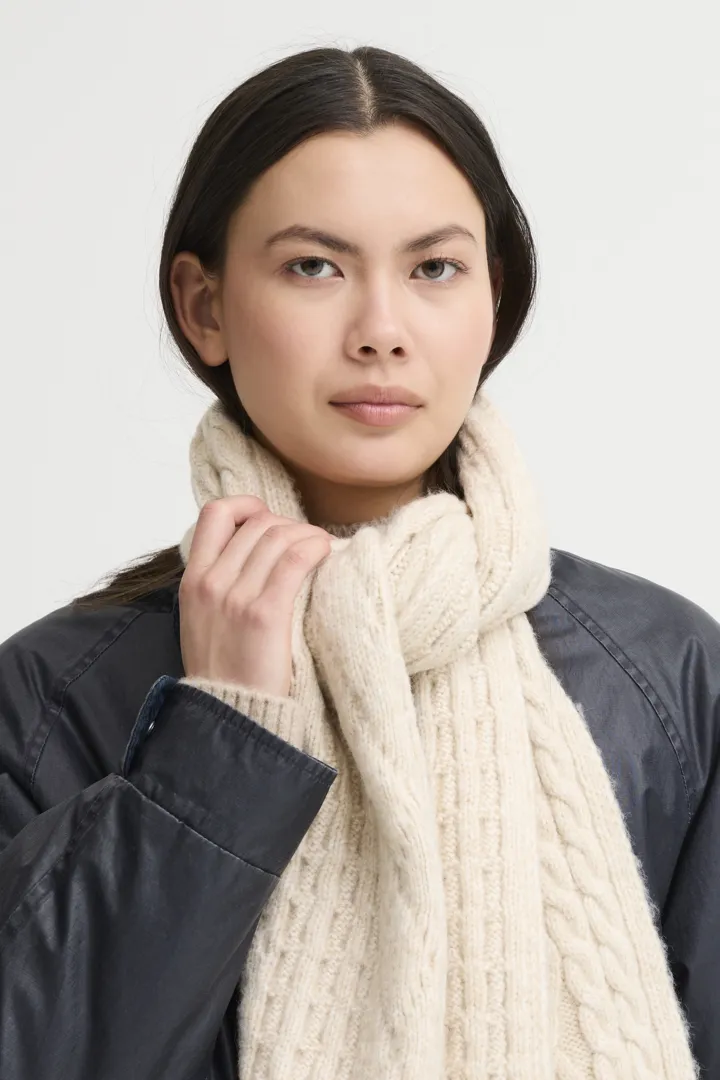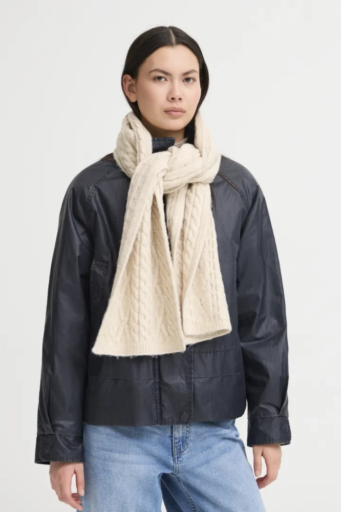 De Lucy Sjaal van Ichi is een zachte, gebreide sjaal in een warme beige kleur, gemaakt van een comfortabele mix van polyester, acryl en nylon. Deze veelzijdige sjaal houdt je lekker warm en voegt een stijlvolle touch toe aan iedere outfit.