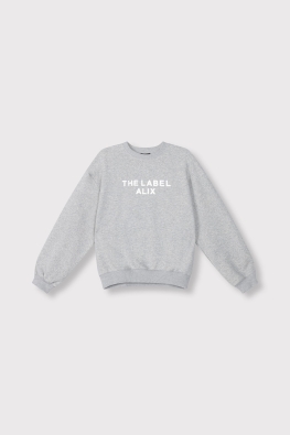De Foil Alix Sweater is een comfortabele trui van Alix the Label, gemaakt van een zachte sweaterkwaliteit. De voorzijde is voorzien van een opvallende folieprint met de tekst 'THE LABEL ALIX'. Draag hem lekker stoer op een jeans, of casual op een mooie pantalon.