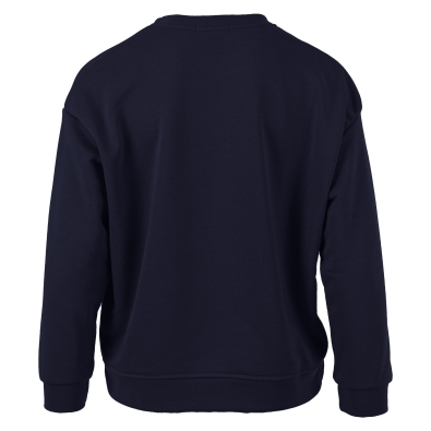 Indigokleurige sweater met een ronde hals en een subtiel borduurdetail. De sweater heeft een tijdloze uitstraling en is gemaakt van een comfortabele katoenmix, perfect voor een casual en moeiteloos stijlvolle look.