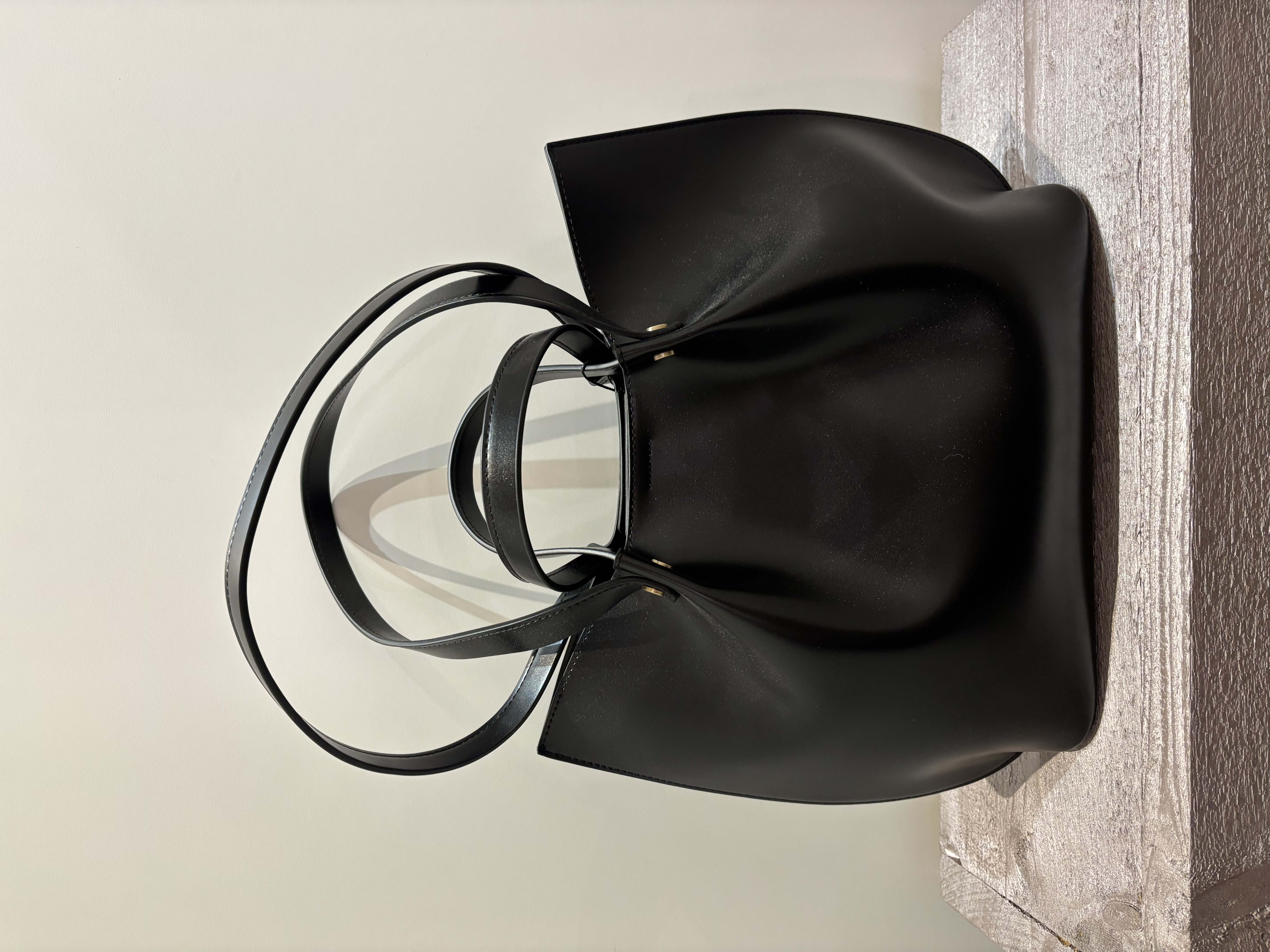 Zwarte Bulaggi hand-/schoudertas van vegan leer met een stijlvolle, tijdloze uitstraling. De tas heeft korte handvatten én een lange schouderband, zodat je haar op verschillende manieren kunt dragen. Binnenin zit een losse binnentas met ritssluiting voor extra veiligheid en organisatie. De tas sluit zelf ook met een ritssluiting en is afgewerkt met goudkleurige details voor een chique touch.