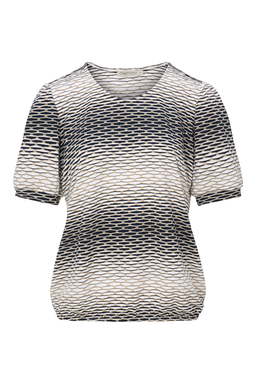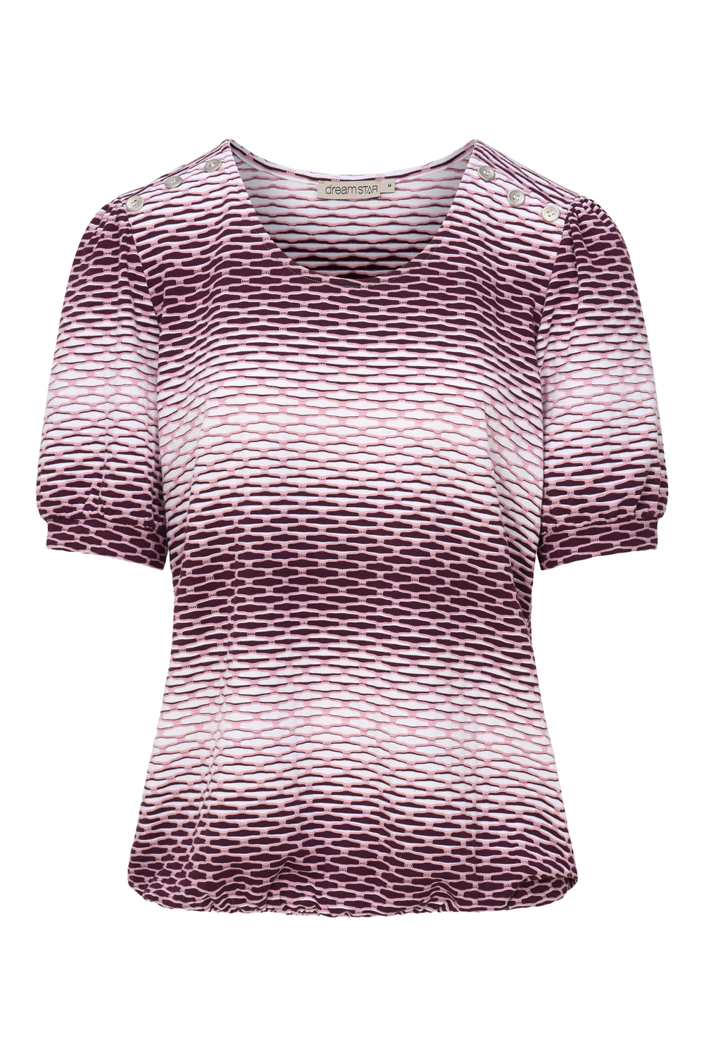 Gestreepte top van Dreamstar met een speels kleurenspel. Het shirt is uitgevoerd in verschillende kleurcombinaties – indigo/zand en pink/bordeaux – en gemaakt van een soepele stof met stretch voor extra draagcomfort. Een veelzijdige top die makkelijk te combineren is voor zowel casual als geklede looks.