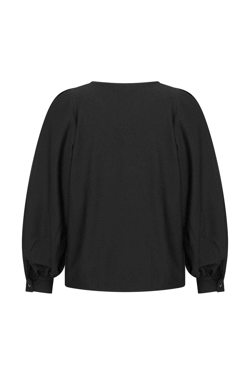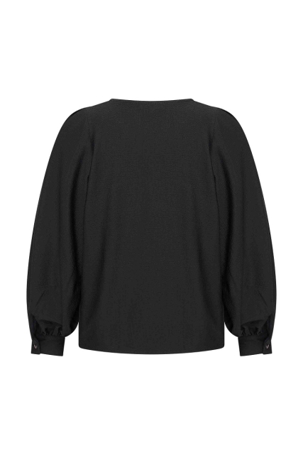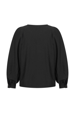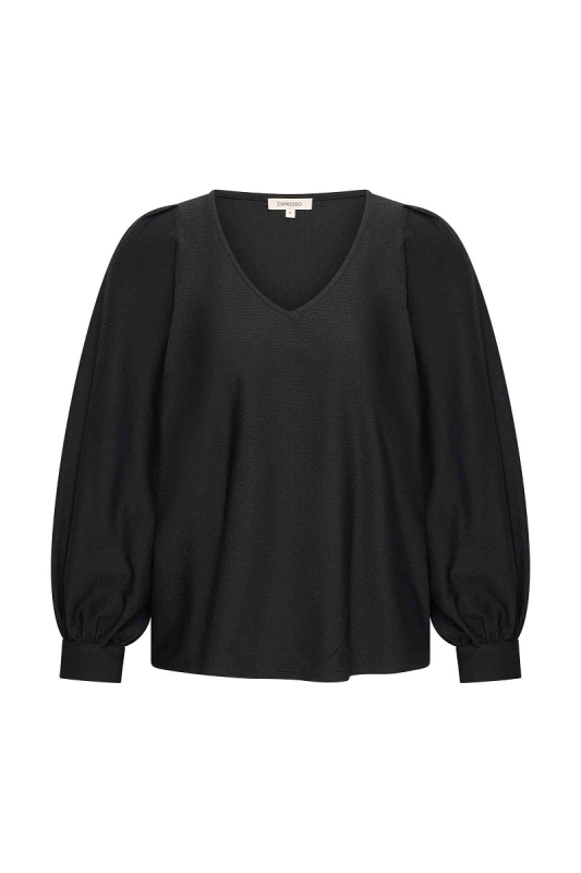 Deze zwarte top van Expresso is uitgevoerd in een comfortabele stretchkwaliteit. Het rechtvallende model heeft een elegante V-hals en wijde driekwartmouwen. De gestructureerde stof geeft de top een stijlvolle uitstraling.