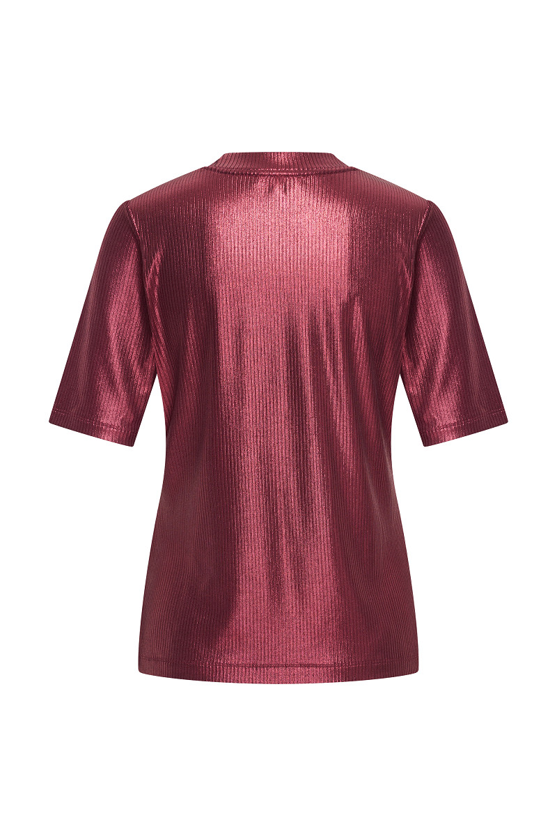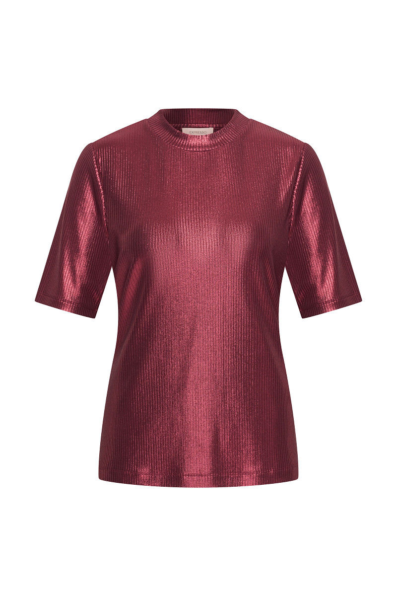 Deze donkerrode top van Expresso is uitgevoerd in een comfortabele stretchkwaliteit. Het aansluitende model heeft een ronde hals en korte rechte mouwen. Het subtiele glimmende detail zorgt voor een opvallend en stijlvol accent.