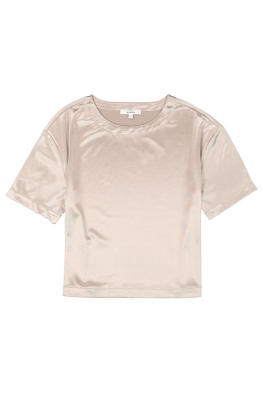 De Gouden Metallic T-shirt van Garcia is een stijlvol T-shirt met een luxe, metallic look. De satijnachtige stof geeft het item een chique uitstraling. Het T-shirt heeft een klassieke ronde hals, korte mouwen en een relaxed fit, wat zorgt voor een comfortabele en soepele pasvorm.