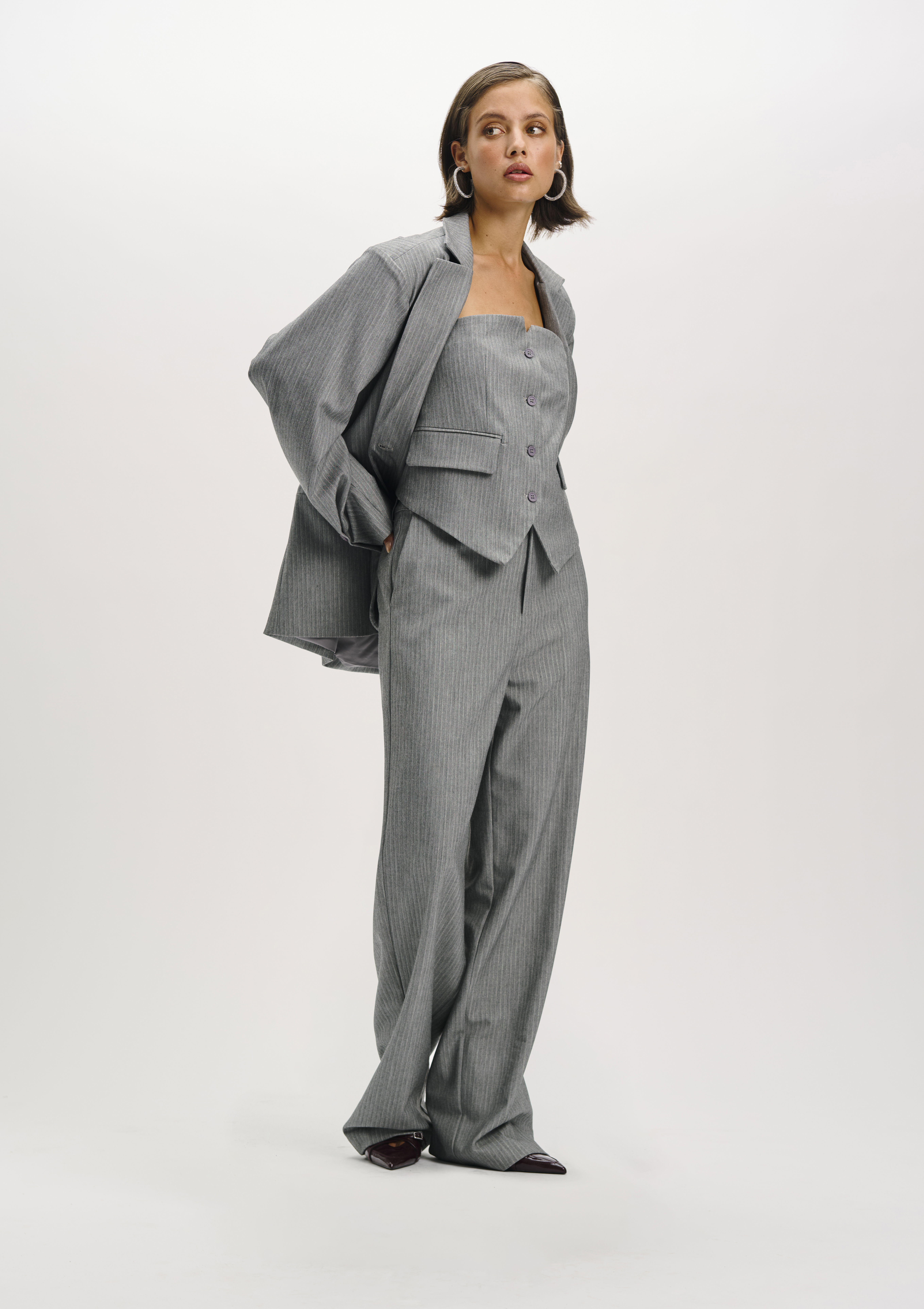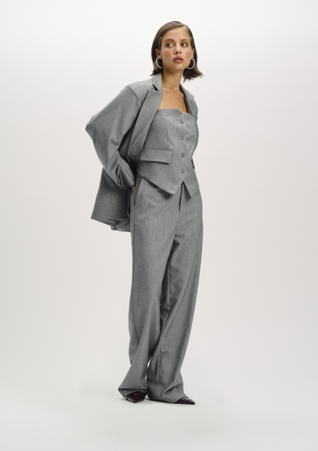 Korset top van een rijke suitstof met subtiele glans door de lurexgaren. Het model heeft een regular fit, een volledige knoopsluiting en decoratieve paspelzakjes aan de voorkant. Mooi om solo te dragen of te combineren met de bijpassende MIKKY blazer en KALEA broek voor een complete, geklede look.