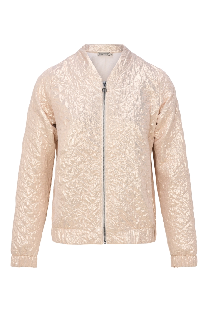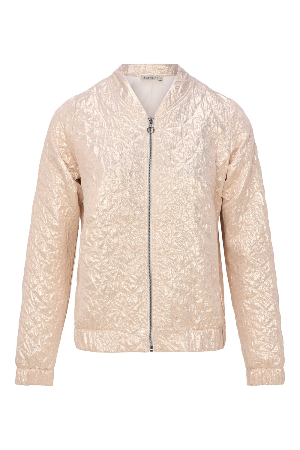 Goudkleurig metallic jasje van Dreamstar met een opvallende, trendy uitstraling. Het jasje is gemaakt van een soepele stof met metallic finish en geeft elke outfit direct een glam touch. Perfect om zowel casual als feestelijk te combineren.