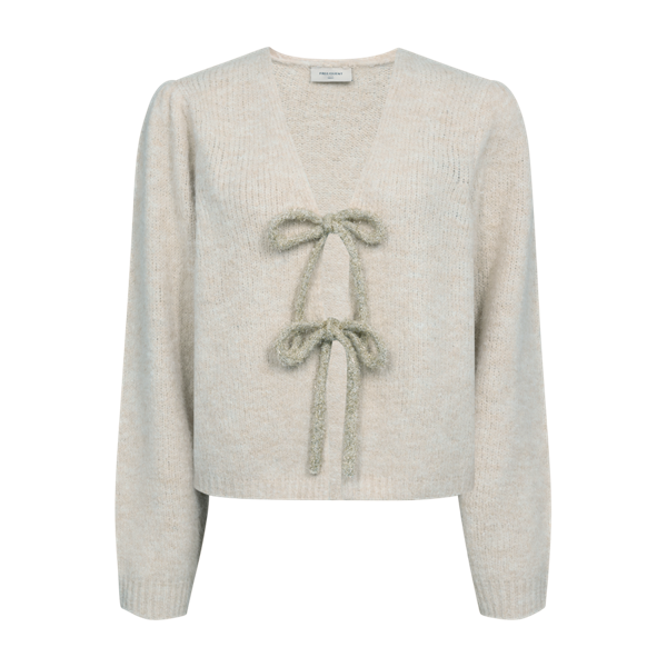 Het vest Lulu van Freequent is een zachte, elegante cardigan met subtiele strikdetails voor een vrouwelijke touch. Gemaakt van een comfortabele mix van gerecycled polyester, polyamide, wol en een vleugje elastaan, voelt dit vest licht en luxueus aan. Perfect om over een top of blouse te dragen voor een chique, casual look.