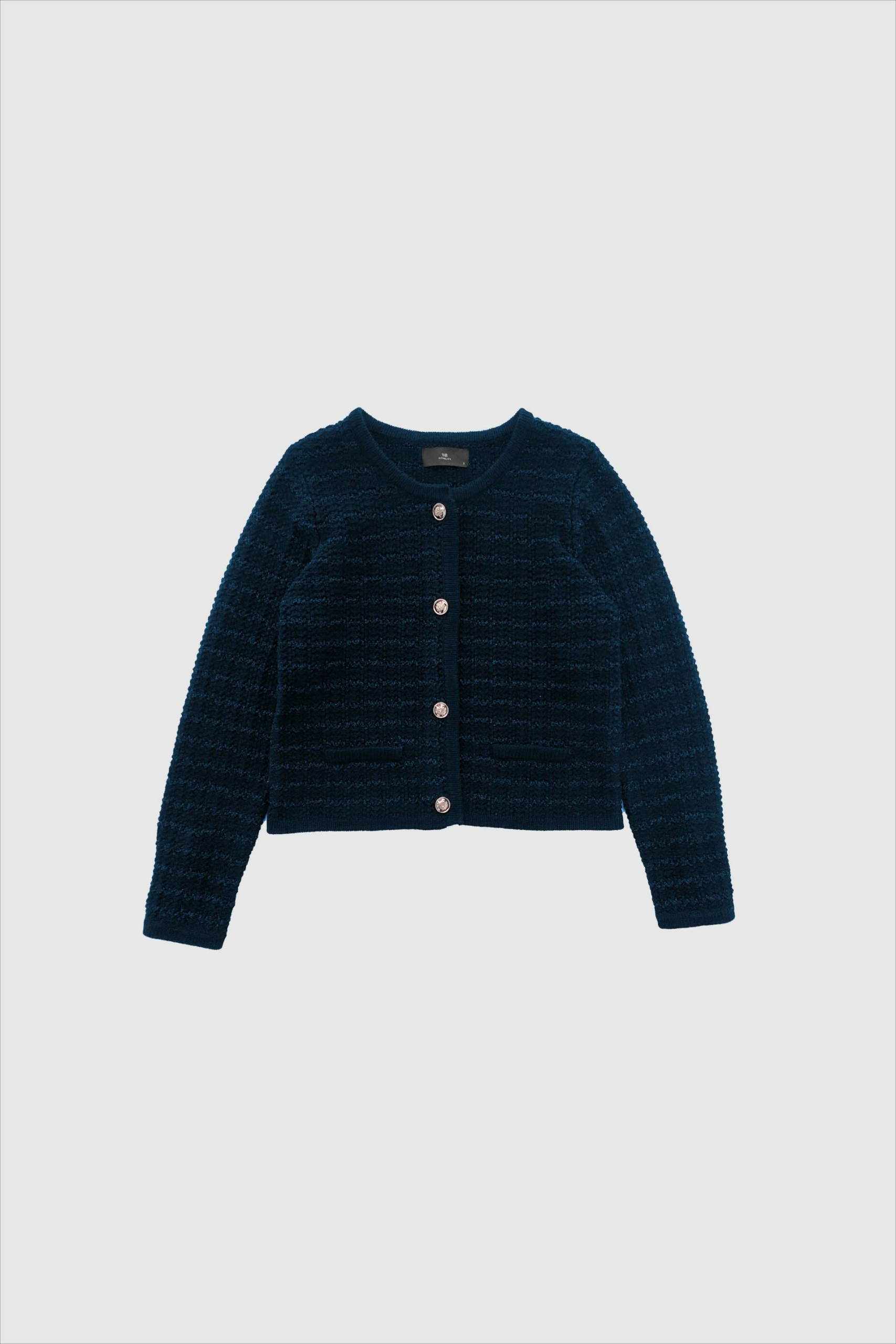 De Alfired Knit Jacket van With Black is een gebreid vest met een zachte textuur. Het vest heeft een normale pasvorm (regular fit) en sluit aan de voorzijde met opvallende gouden knopen. De stof is voorzien van subtiele, toon-op-toon lurex strepen die voor een elegante glans zorgen. Verkrijgbaar in 2 kleuren.
